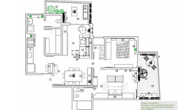 Arquitetura é a forma de concretizar a Análise do Feng Shui por meio do projeto de arquitetura. Com uma arquitetura de qualidade, feita com consciência de todos os elementos do Feng Shuie incluindo assim a decoração, composição dos materiais, circulação, iluminação, tendo muito mais chances de trazer bem estar e qualidade de vida a seus habitantes.